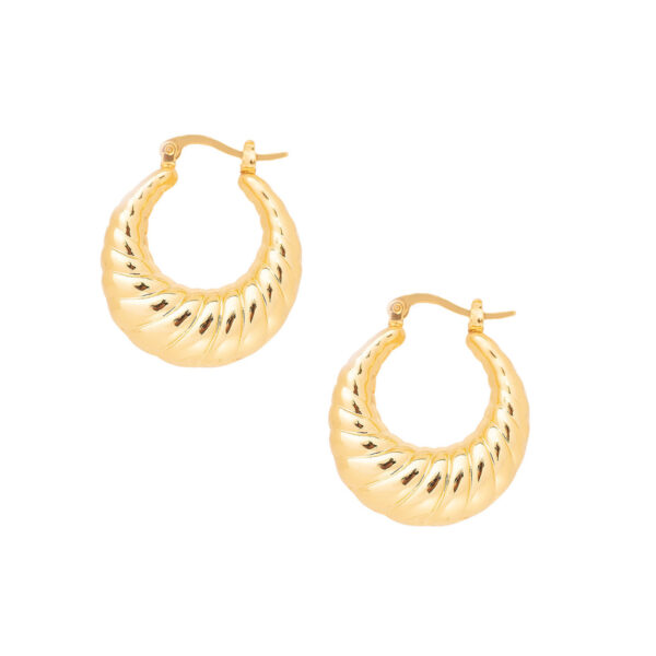 Aros con diseño entorchado hecho en bronce con baño en oro 18K ¡Super livianos! Producto: Aros en baño de Oro 18k Base: Bronce Tamaño: 3 cm Este producto es respetuoso con la piel. Los materiales utilizados son resistentes y firmes y el producto . El color puede variar con el tiempo. Esto se debe al contacto directo con la piel y el propio PH del cuerpo.Únete a nosotros en Instagram @narcissabsas