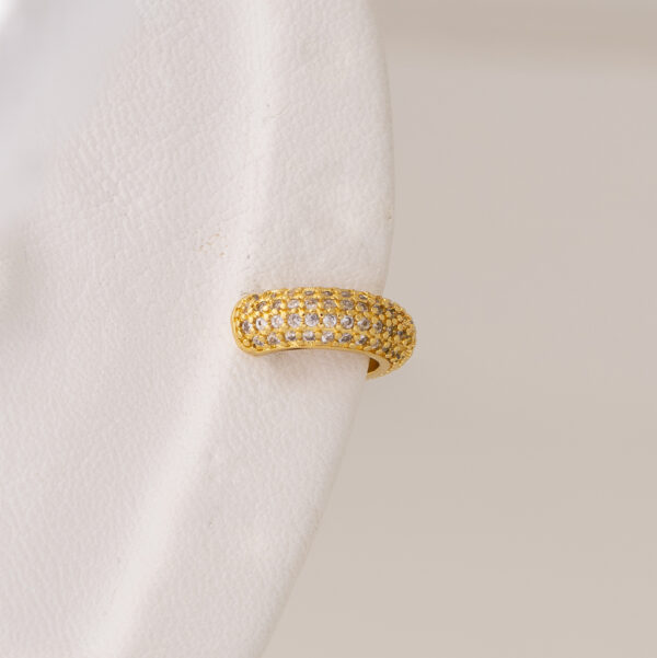 Ear Cuff en bronce y zircones en oro laminado Especificaciones del producto: Tamaño: Ajustable Material: Bronce Oro laminado Instrucciones de cuidado: Evite el contacto con productos químicos y líquidos, como perfumes, cremas y agua Limpie regularmente con un paño suave y seco Guarde los aros en un lugar seco y seguro cuando no los use. Todos nuestros productos son respetuosos con la piel, los materiales utilizados son resistentes y firmes, el color puede variar con el tiempo producto del contacto directo con la piel, para envitarlo por favor sigue nuestras instrucciones.