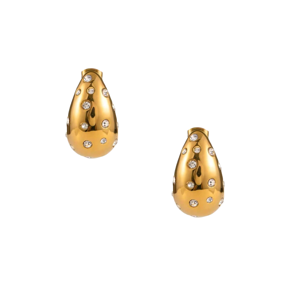Los aros amalfi shine cuentan con un diseño en gota con finos circones en su parte frontal, hechos de materiales de alta calidad lo que los hace duraderos y resistentes a la decoloración y el desgaste. Bañados en Oro 18K