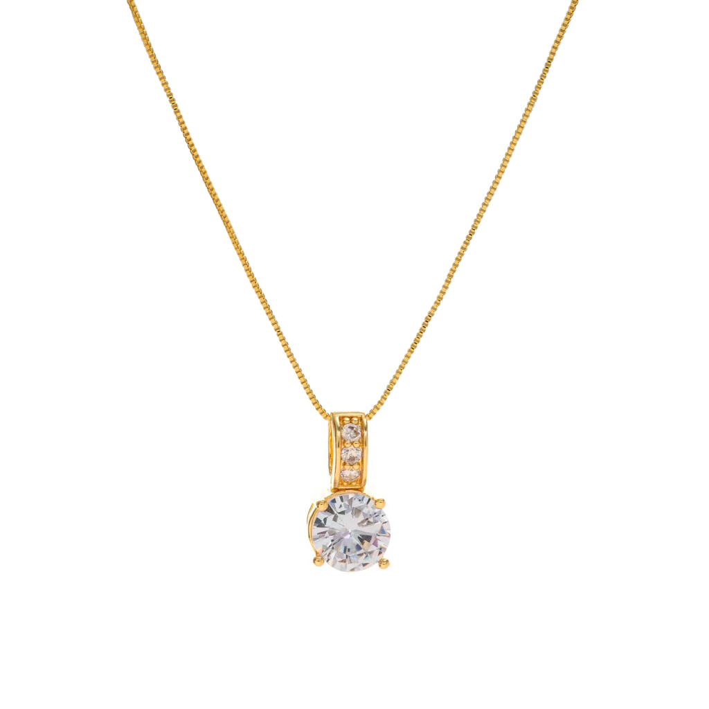 Cadena Lucy está hecha con una cadena de tejido venecianoen oro laminado 18k con dije de punto de luz con finos zircones en base de oro laminado.